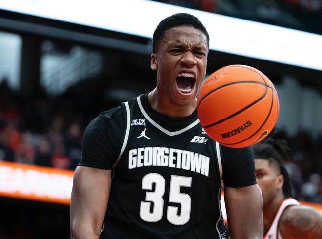 在乔治城大学的大一赛季,索伯就展现出内线统治力:出战 24 场比赛,场均 31.5 分钟贡献 14.5 分 8.5 篮板 2.4 助攻 1.5 抢断 2.0 盖帽,投篮命中率 53.2%,攻防两端的全面表现,让他成为选秀大会上的热门人选。