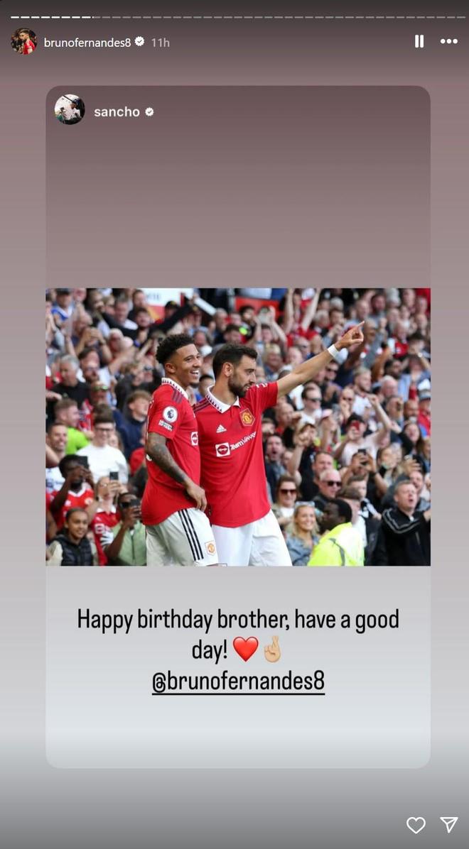 布鲁诺-费尔南德斯迎来了自己31岁的生日,曼联队友、前队友们都纷纷为他送上生日祝福,B费在个人社媒短时间内就转发了数十条动态。