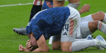 32分钟,哲凯赖什与加布里埃尔头碰头,前者血染赛场。