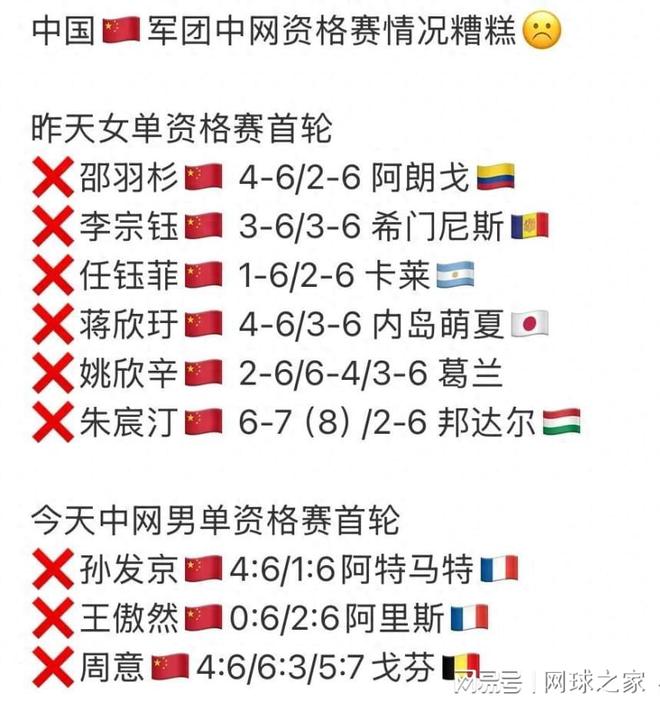 可是当十场单打资格赛结束后,竟然无一人挺进第二轮,全部上演了一轮游,以致有球迷和网友痛心地发问,“就问你意不意外,惊不惊讶?”