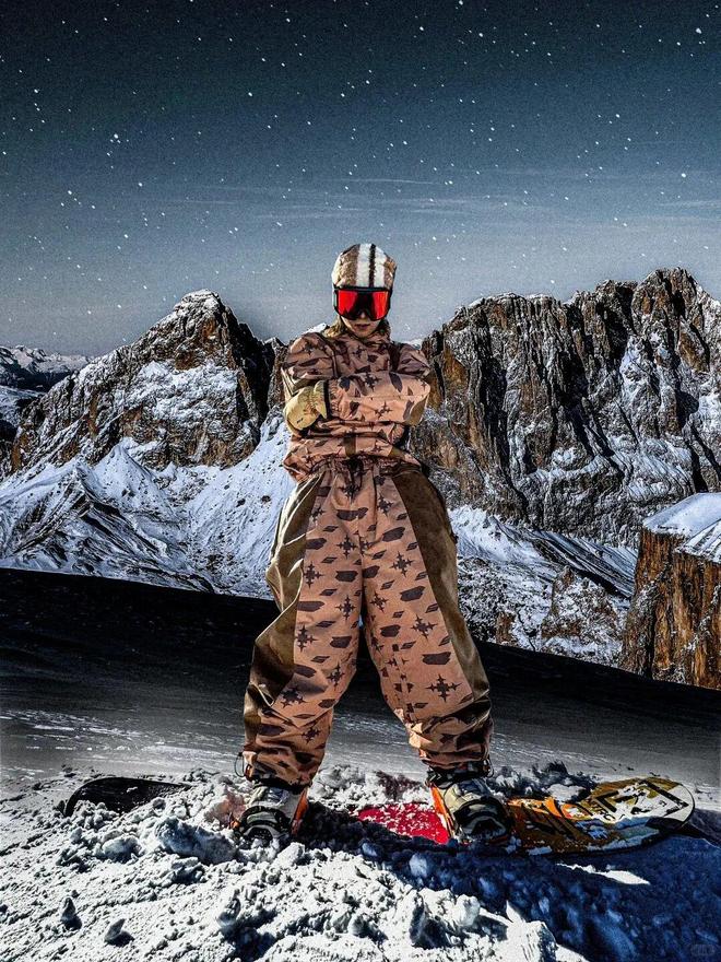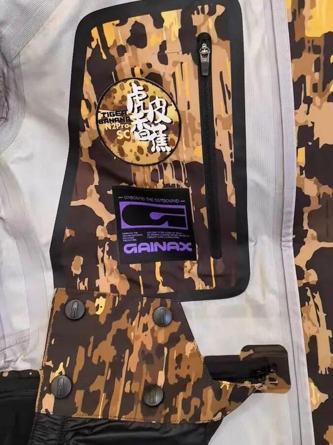 以 “探索边界之外” 为理念,国内年轻户外运动品牌 GAINAX,2025 年为其性能系列雪服设计了全新的配色——迷彩印花“虎皮香蕉”,这款具有迷彩设计感的印花雪服,不但拥有超绝的视觉效果,性能也相当强悍。