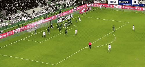 第41分钟,青岛海牛获得角球,奥古斯托的劲射击中边网。